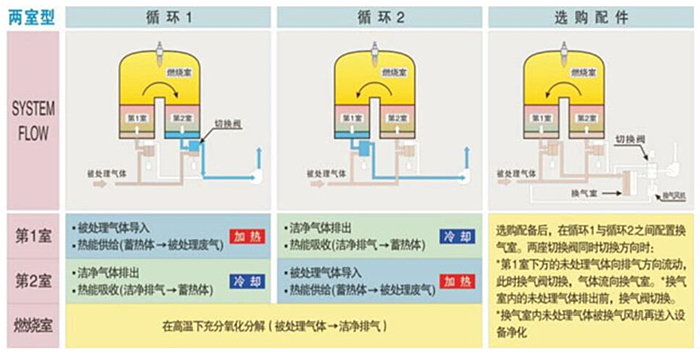 用RTO蓄熱式焚燒爐凈化有機廢氣,是屬于熱力燃燒法處理有機廢氣的范疇。就一般RTO焚燒爐而言,通常至少需要用兩臺蓄熱室來操作,兩室RTO蓄熱式焚燒爐是較常用的有機廢氣燃燒設備之一。